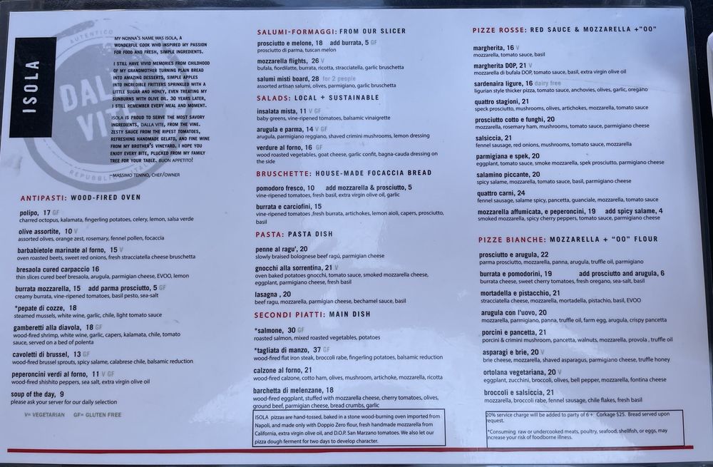Customers rave about the delicious pizzas, such as the mushroom and prosciutto white pizza, mozzarella affumicata e pepperoncini, and Quattro Stagioni. The crust is praised for its softness and doughy texture, complementing the flavorful toppings perfectly. Don't miss out on their Tuesday deal for two pizzas at an unbeatable price. With impeccable service, cozy ambiance, and a wide array of dishes to choose from, Isola Pizza Bar is a must-visit destination for pizza lovers in San Diego.